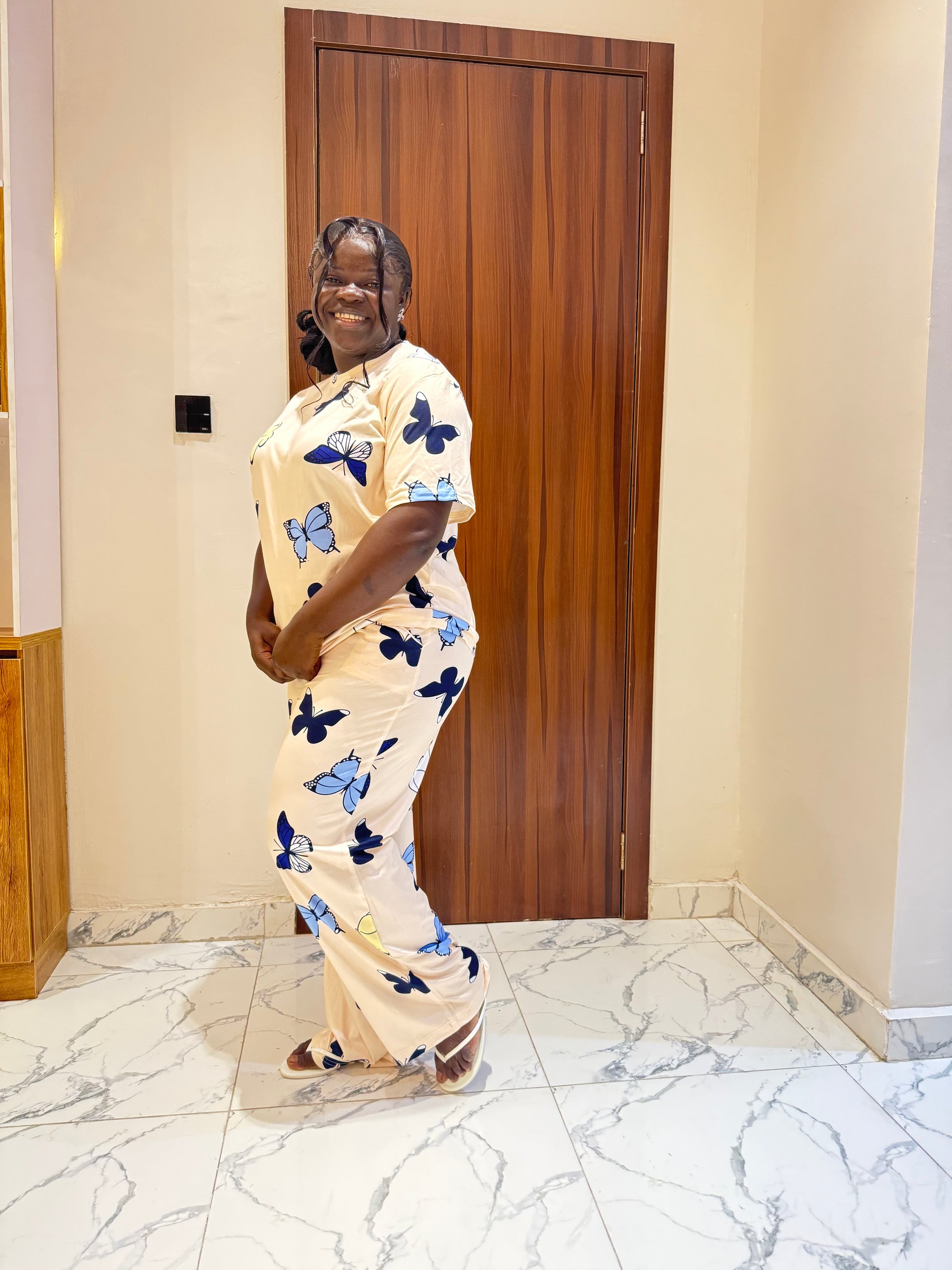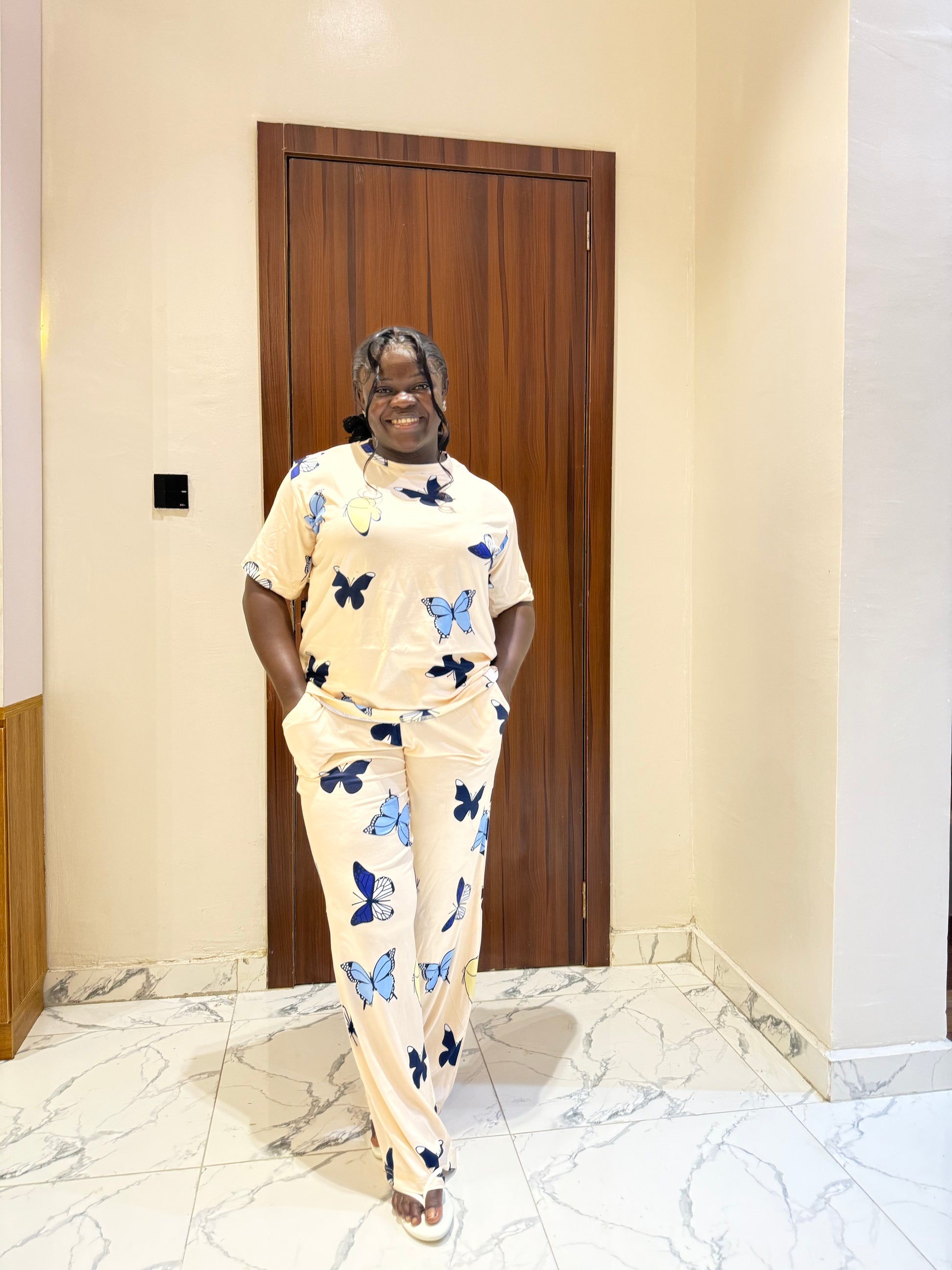 Creamy butterfly pajamas set